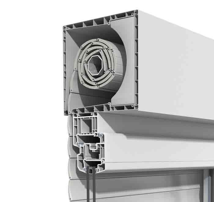 - Cutia și ghidajele sunt fabricate din PVC durabil, disponibil într-o gamă variată de culori și finisaje RAL, pentru o armonizare perfectă cu tâmplăria.